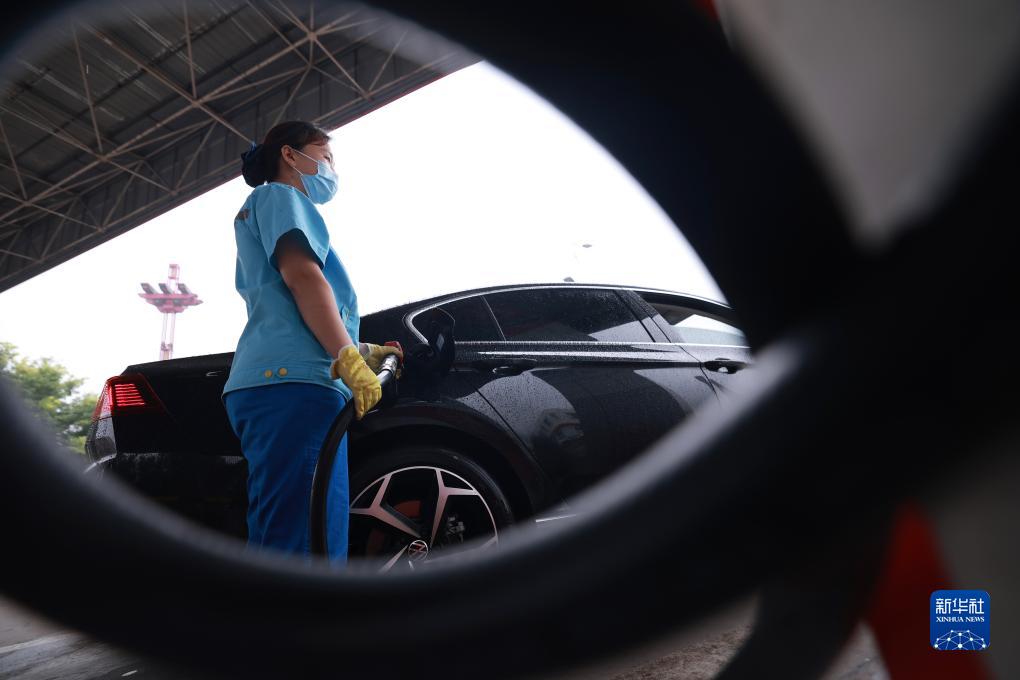 7月12日,河北省内丘县一家加油站的工作人员为汽车加油。新华社记者 朱旭东 摄