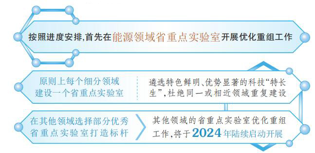 此次能源领域省重点实验室优化重组,原则上每个细分领域建设一个省重点实验室,遴选特色鲜明、优势显著的科技“特长生”,杜绝同一或相近领域重复建设。随着产业的发展和对科学的认识不断加深,布局方向将每年度适当调整。空白或紧缺领域将在今后的省重点实验室优化重组工作中查漏补缺。省重点实验室优化重组采用边重组边建设、试点先行、分批推进的方式进行,初步考虑3年完成。今年在选择能源领域开展优化重组的同时,在其他领域选择部分优秀省重点实验室打造标杆。其他领域的省重点实验室优化重组工作,将于2024年陆续启动开展。