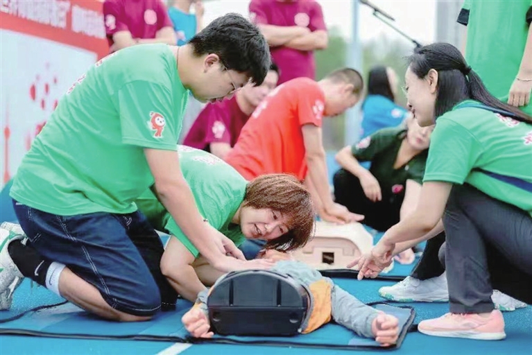 为弘扬“人道、博爱、奉献”的红十字精神,开展好“爱心相‘髓’+生命教育”行动,倡导公民参与无偿献血、捐献造血干细胞,省红十字会在省体育中心举办了一场别开生面的趣味运动会,以趣味健康的形式,向造血干细胞捐献者、志愿捐献者、志愿者及无偿献血者致敬。活动当天,我省的造血干细胞捐献者和志愿者代表等组成几支参赛队伍,大家在赛场上奋力拼搏,欢呼声与呐喊声此起彼伏。除了趣味运动项目,省红十字会还设置了“三献”知识问答和“心肺复苏”技能操作竞赛环节,普及红十字“三献一救”知识。