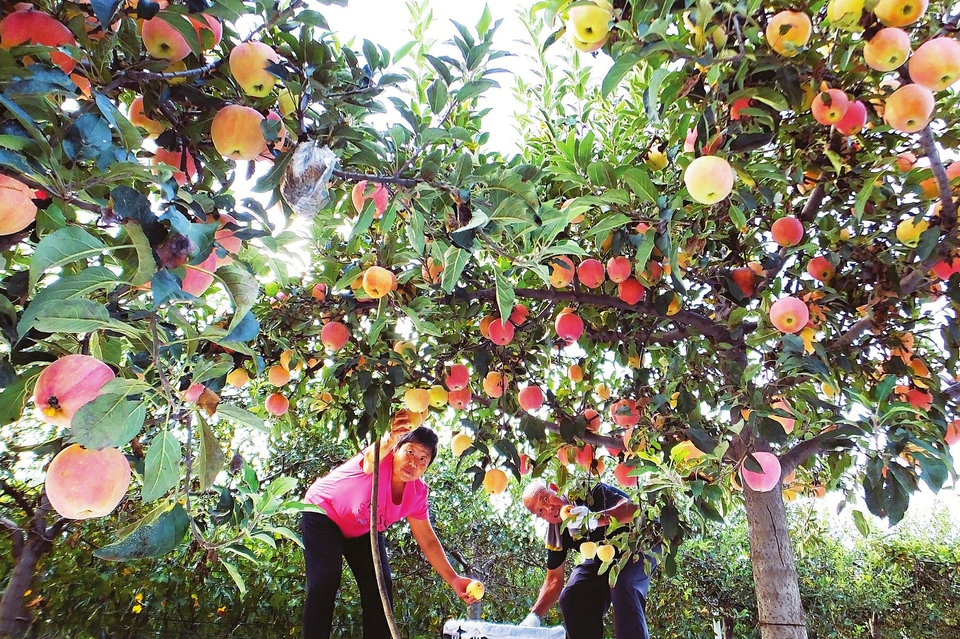 九月十八日,新绛县龙兴镇段家庄村,果农们种植的“中秋王”苹果喜获丰收。