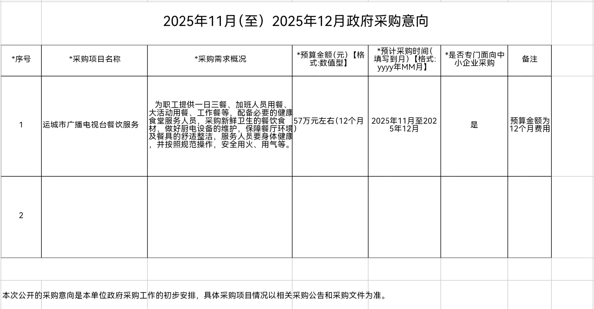 2025年11月(至)2025年12月政府采购意向